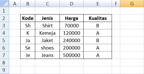 $B$2:$E$7 ; merupakan lokasi ataupun daerah cell table keterangan dari